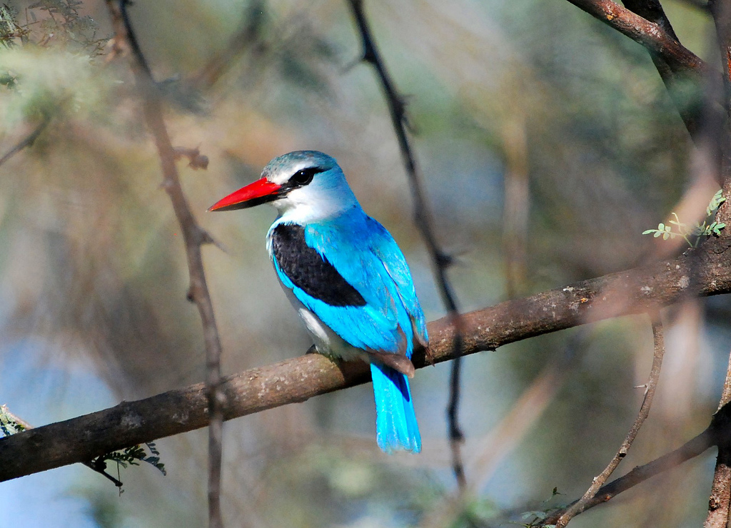 The woodland kingfisher looks similar to the mangrove kingfisher, but has a black lower mandible and a pale blue head. As its name implies, this beautiful bird prefers woodland habitat, especially acacia trees. They are extremely territorial and have even been know to attack humans.