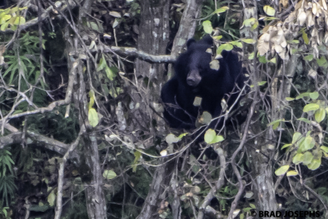 On our second trip, we spotted this moon bear, in the upper left, working a ridge on the other side of the valley.