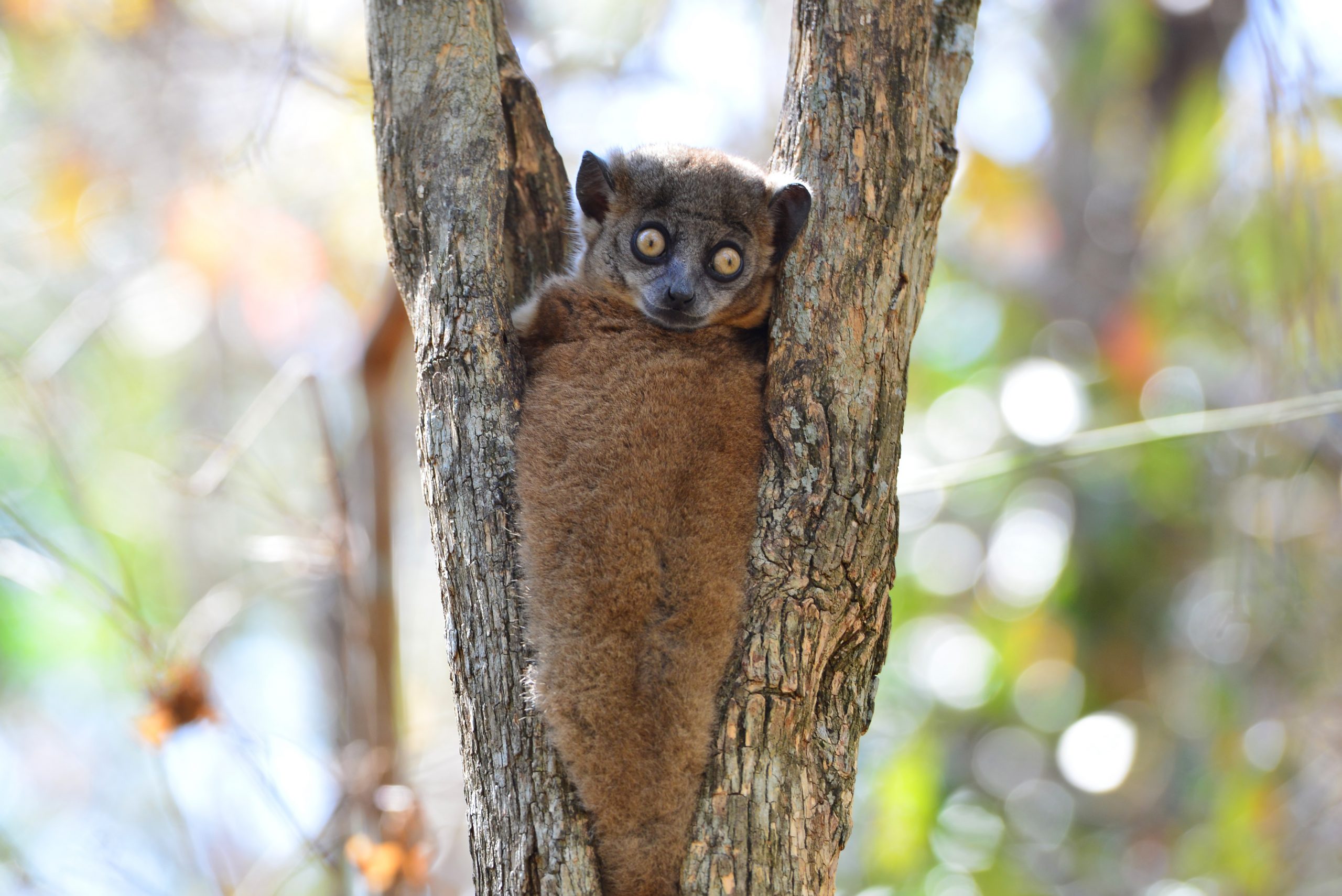 An endangered Zombitse sportive lemur (Lepilemur hubbardorum) in Zombitse National Park. © Rachel Kramer/WWF-US