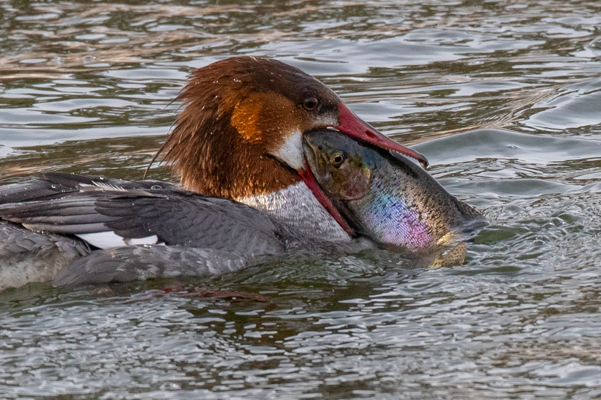This week we chose a common merganser having a meal.