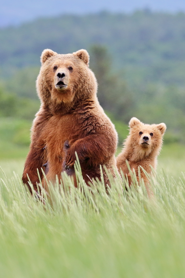 Photographer Tony Boot took this photo as the mother bear kept a watch on a male grizzly nearby.