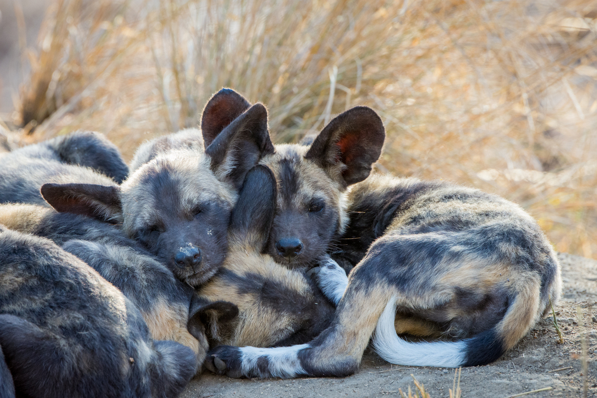 This week we chose a peaceful pack of wild dog pups resting.